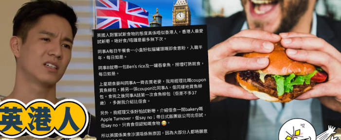 该名移英港人在一个移英港人群组发帖,数落其英国同事,指“英国人对尝试新食的态度真係唔似香港人,香港人最爱试新嘢,唔好食/唔锺意最多无下次”。楼主提到两名同事,“同事A每日午餐食一小盒好似猫罐头嘅即食意粉,入职半年,每日如是;同事B就每日带一包Ben’s rice及一罐吞拿鱼,捞埋叮热就食,每日如是”。