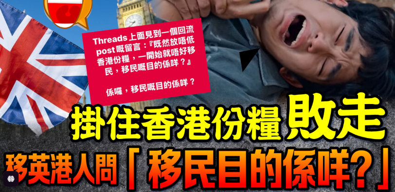 近排网上出现很多移英人士败走的回流讨论,有人坦言“挂住香港份粮,所以返香港”。有移英港人不满唱衰,留言质问“既然放唔低香港份粮,一开始就唔好移民,移民目的係咩?”不少网民则揶揄“为型囉”、“为咗食亲朋好友嘅送行饭”、“为做贱民”。