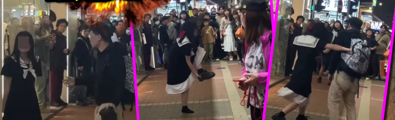 影片全长约28秒,从片中可见,旺角豉油街荷李活商业中心外,有一对疑似情侣吵架,一名扎蝴蝶结的少女坐在地上大吼,其男友上前想扶起她,惟女子即推开男友大喊“走开!”。