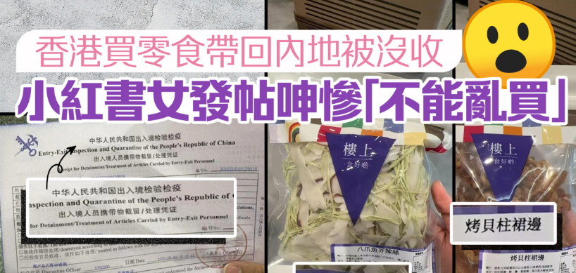 香港買零食帶回內地被沒收 小紅書女發帖呻慘「不能亂買」