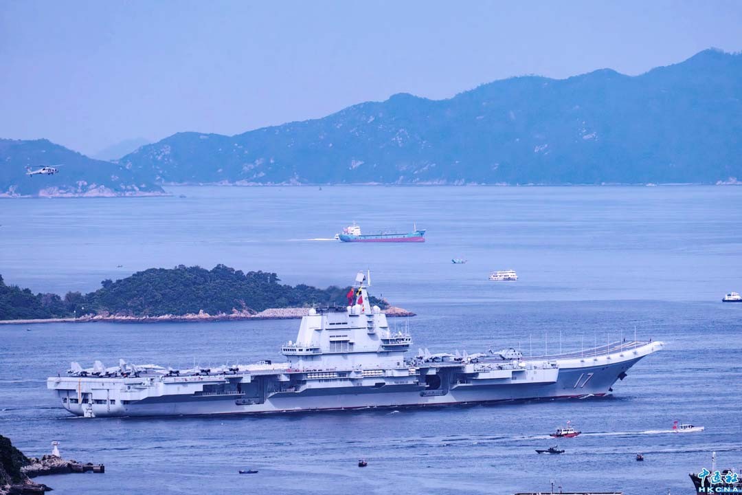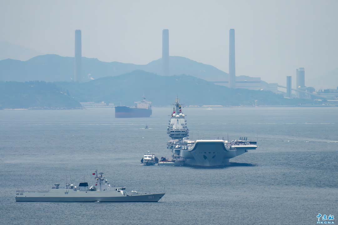 7月7日,山東艦航母編隊離開香港,結束為期5天的訪港行程。(許其皓 攝)
