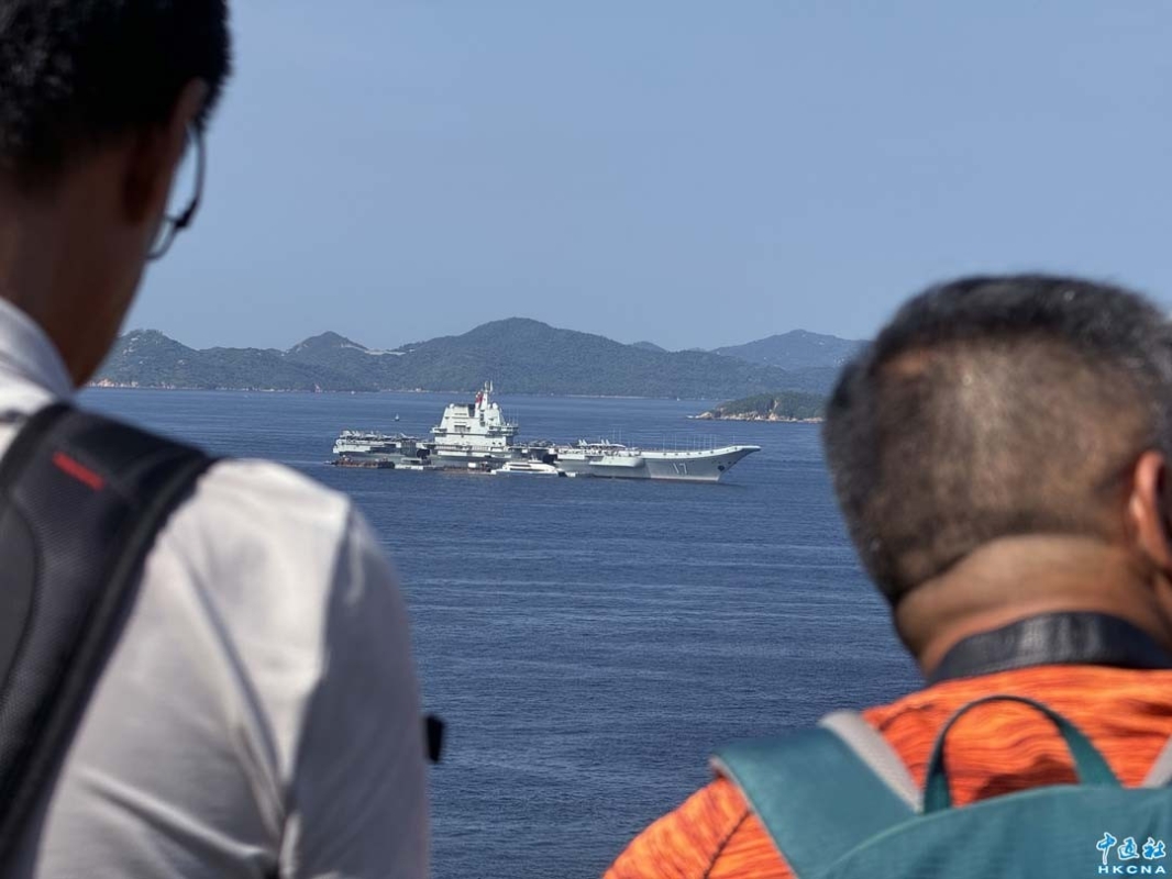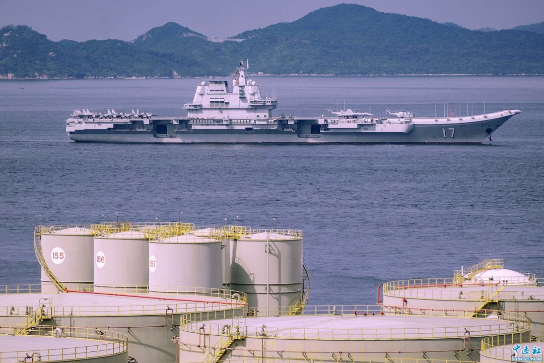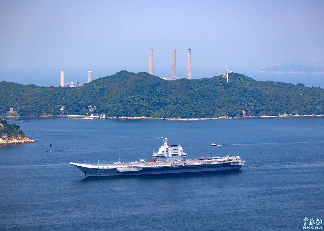 7月7日,山東艦航母編隊離開香港,途經南丫島對開水域。 (徐文峰 攝)