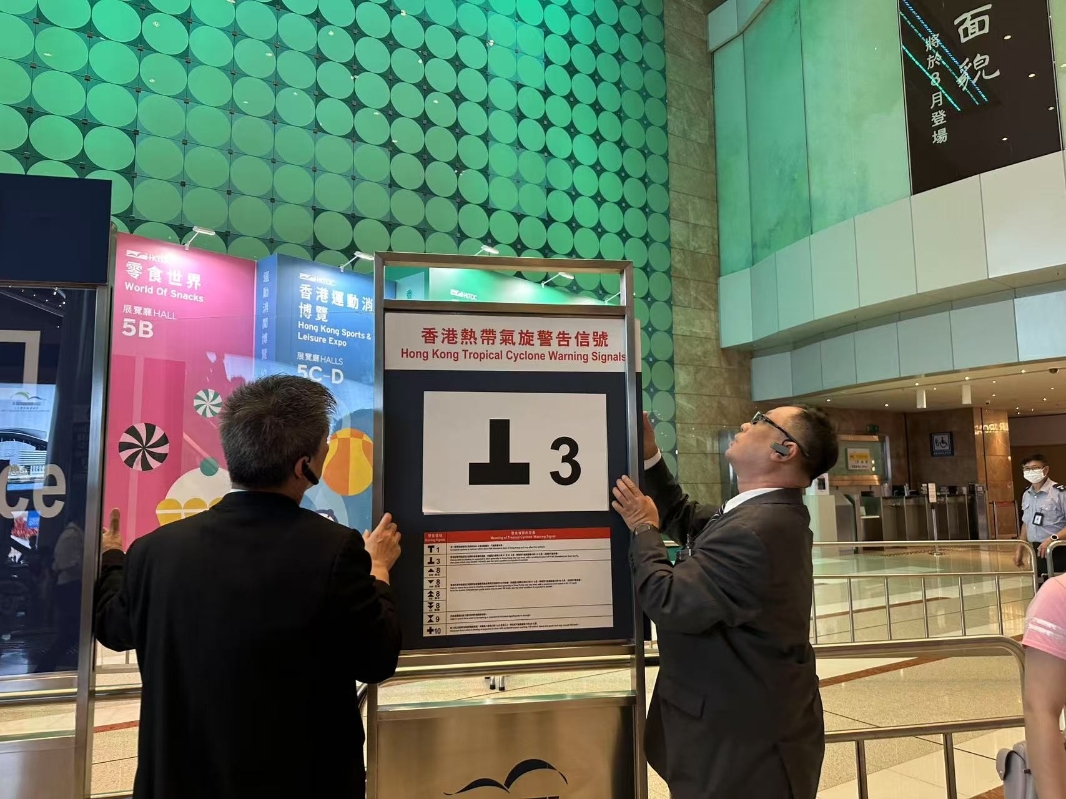 香港第35屆書展19日迎來周末,儘管當天天文台發出3號信號,但不阻書迷熱情。