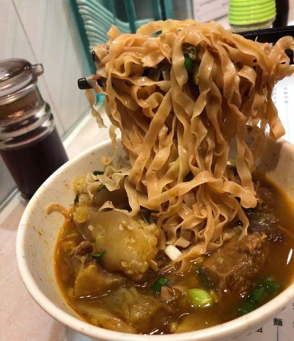 九记的牛筋燉的也很Q軟,就是很像那種入嘴滿滿膠原蛋白的感覺,很滑,所以在清湯裡伊麵會吸飽湯汁,吸哩呼嚕地吸進嘴裡,真的超級滿足个人感觉咖哩好像比上湯更好吃因为他有点辣,上湯那碗的料要配湯才更有味道,