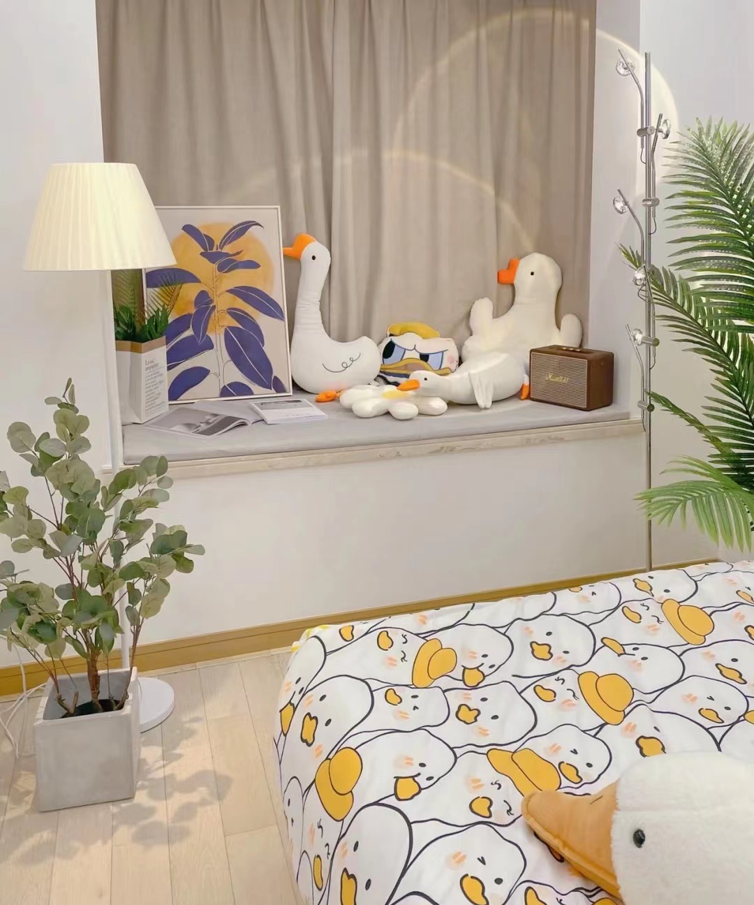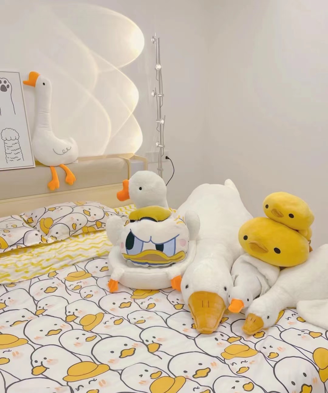 自从直男老公知道我的喜好之后,逢年过节都不需要动脑,直接买各种抱枕做礼.物。于是家里的鸭抱枕越来越多……今天家里大扫除,我把它们都摆到床上。老公说,什么时候家里有这么多鸭子了?不知道为什么,感觉主卧越来越吵了……