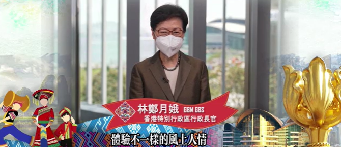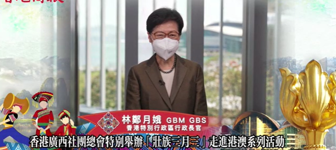 庆祝香港回归祖国25周年 「壮族三月三」走进港澳系列活动在广西南宁与香港两地以视频连线方式启动。 香港特区行政长官林郑月娥在视频中表示,举办该活动可以将独特的广西文化带到香港,让全港市民体验不一样的风土人情,并加深对中华民族多姿多彩文化的认识。