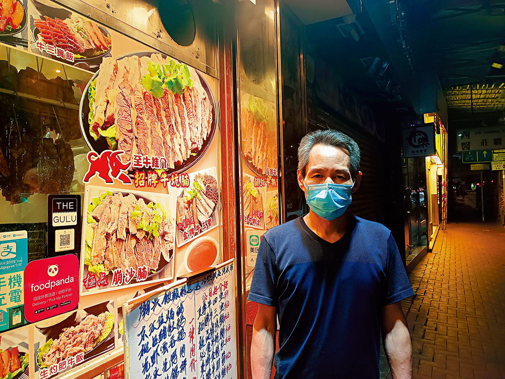 凌晨时分的湾仔静悄悄,只有一间亮灯营业的粉面店,锅中的老汤热气腾腾,伴随着让人口水直流的香味,让深宵夜归人停下匆匆的脚步,一句「唔该一碗牛腩粉」,让疫下冷清的闹市街头,增添了一点人气。,邱师傅提起打包袋,「就算只买一碗我们都照样会送!」