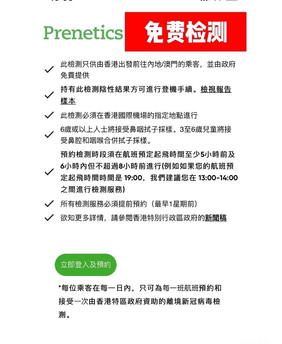 社区检测适用于停留时间超过7天的UU,比如申请延期的UU,上社区检测预约网站预约,名额非常充裕,强制检测免费,如果需要出回内地的报告,选择240HKD的通道。在机场附近隔离的话,机场的社区检测点位于香港國際機場地面運輸候車室(1號停車場及機場巴士站旁),