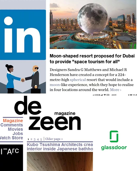 3 Dezeen jobs dezeen作为设计类老牌杂志,除了项目分享,也有招聘专栏。(类似国内的谷德网)可以按照目标公司搜索,也可以按照你想工作的国家/城市搜索,效率非常高。我最后入职的公司也是通过dezeen找到的。