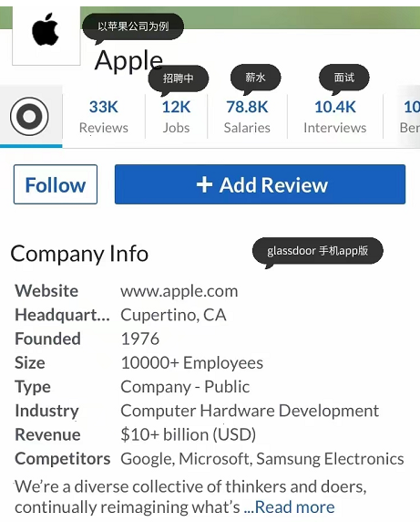 5 Glassdoor 我愿称之为海外求职宝藏网站,也有手机app版本。可以用来找工作,但是我更推荐把他用作公司背景调查的工具。Glassdoor上有求职者的面试心得、在职者评价打分、平均薪水、以及公司整体表现等。当你收到不熟悉的公司offer时,可以用glassdoor做一个初步判断。