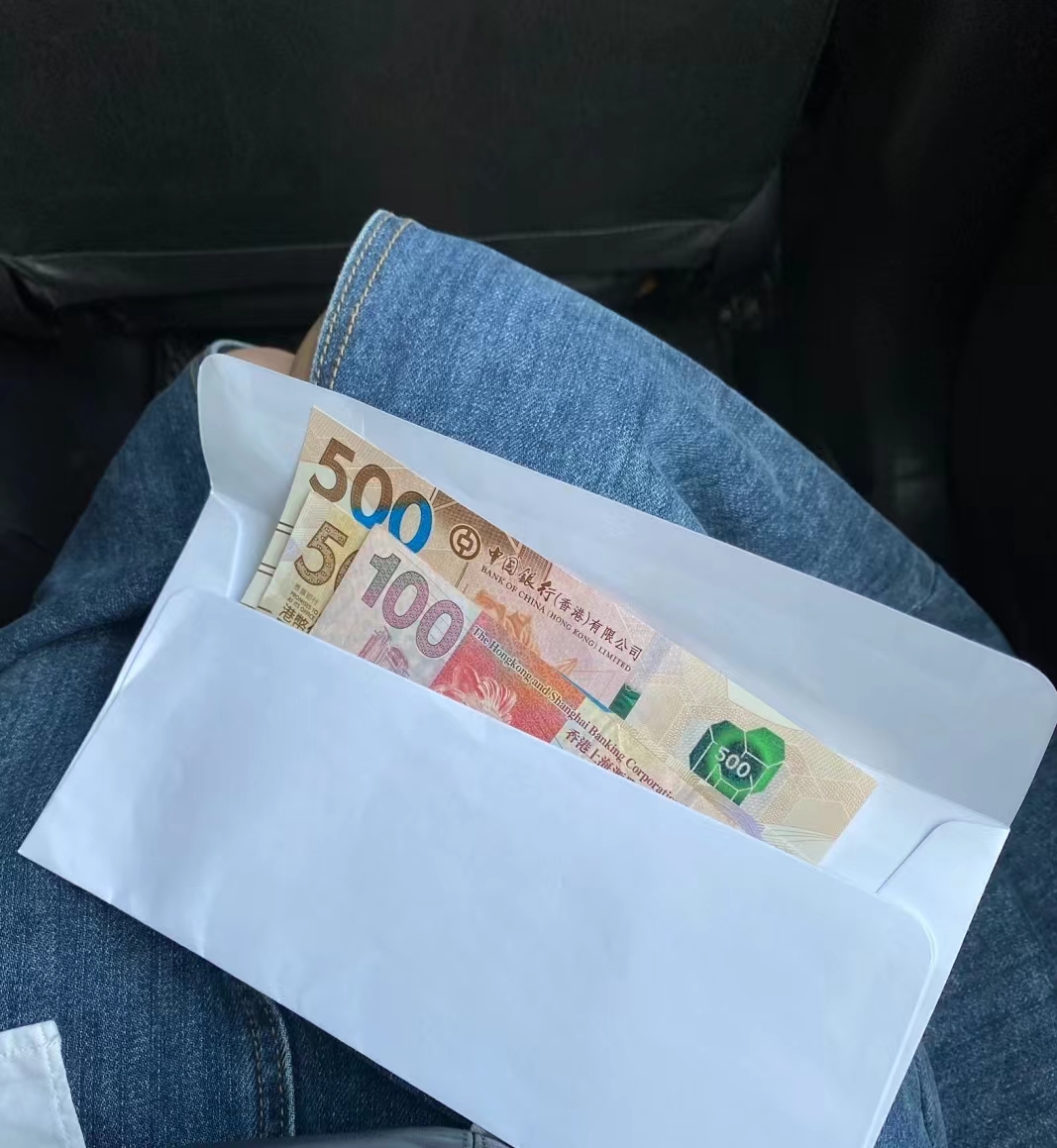 大家都说要提前换一些港币,可为什么没人提醒要带钱包呢!已经习惯一部手机走天下的人,只好沦落到用信封了另外,这边其实还是有点冷的 尤其是室内空调一开,我这个冬天都不穿秋裤的人,赶紧冲出去买了件厚外套