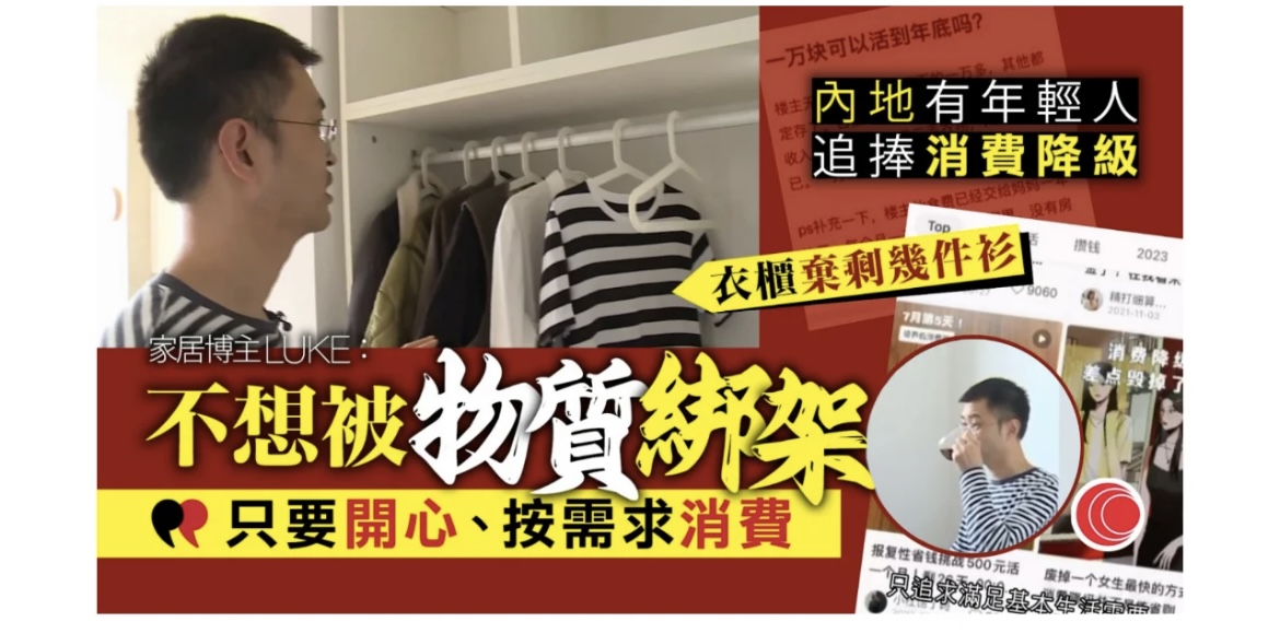 好像他这样选择减少消费的年轻人,在内地愈来愈多,在社交平台就有不少人分享如何买便宜货,只追求满足基本生活需要。其中在豆办讨论区,一个36万人的消费降级群,就讨论了吃饭省钱,挑战一万元花一年等,一度成为热门话题。有学者分析过去数年,疫情加上全球局势不稳,改变了 不少消费者的偏好。
