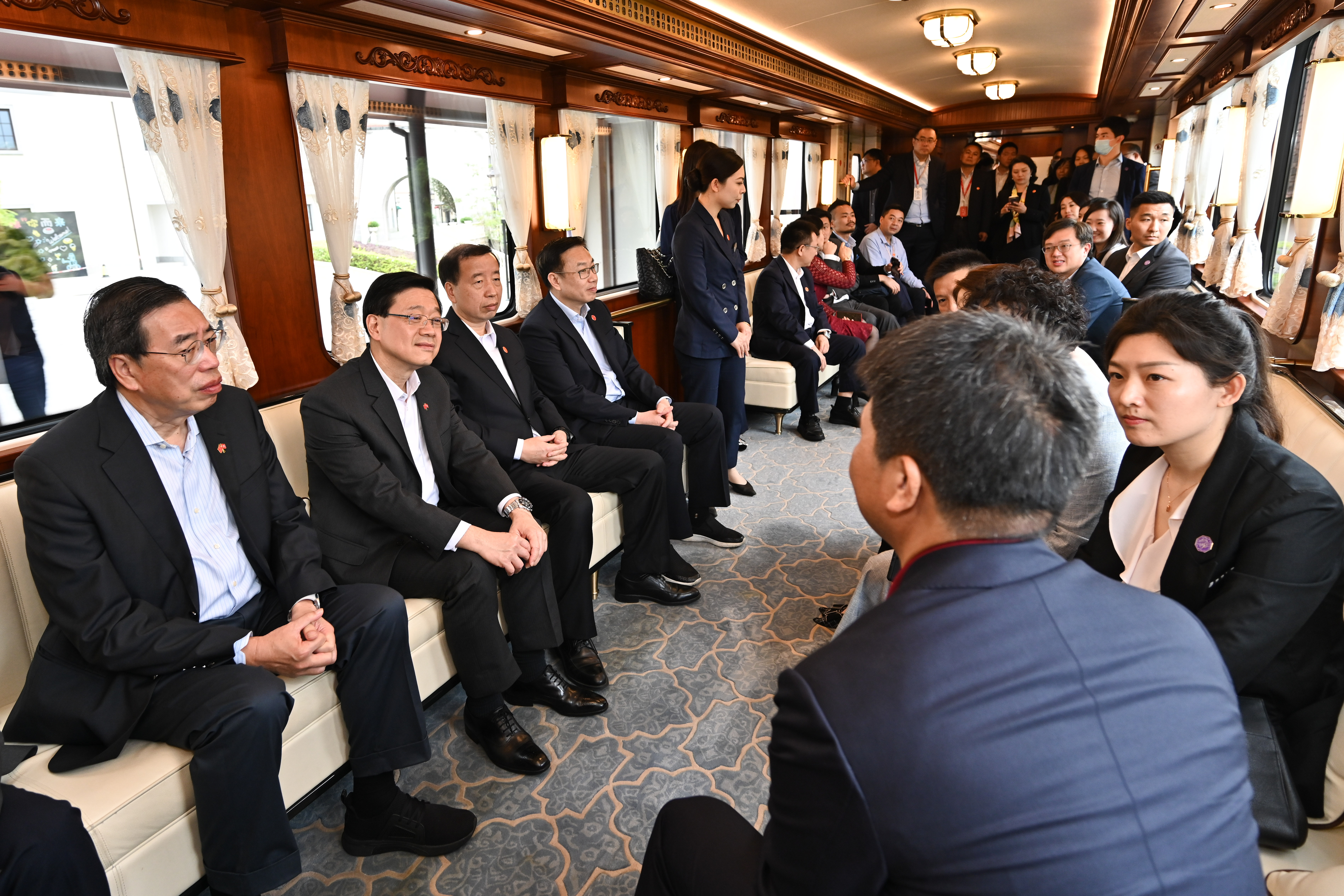 据悉,考察团两队广州会合之后,上午将会参观沥滘浄水厂,随后与广州市领导餐叙,下午将会在珠岛宾馆与广东省领导会面,据悉考察团团昨日为此需进行核酸检测。最后考察团将经广州东站乘搭高铁回港,结束4日考察行程。