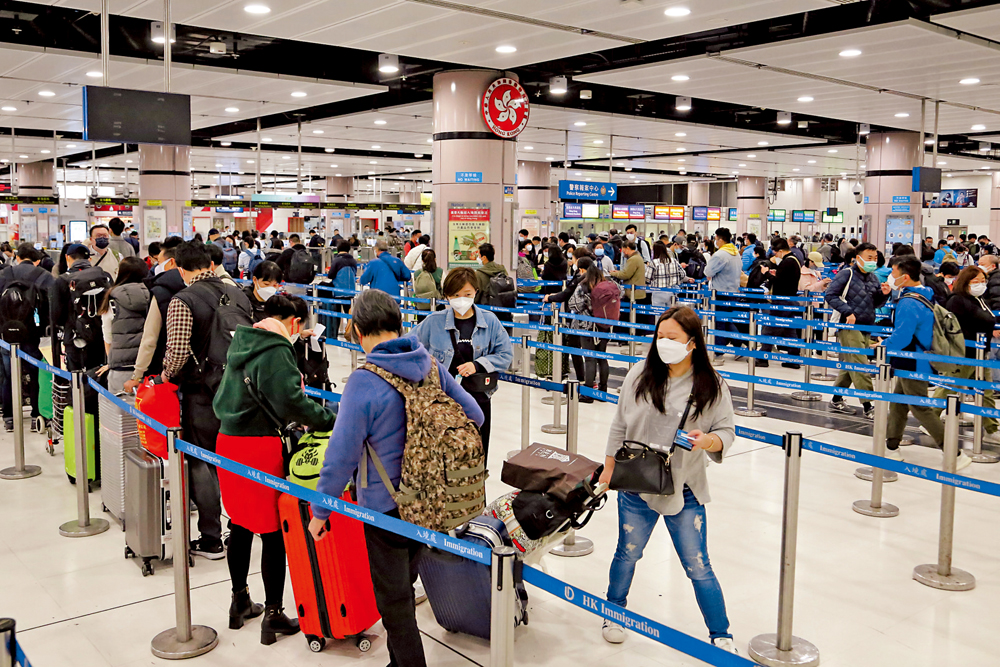 香港与内地恢复通关后的首个五一黄金周长假期,将于本周六展开,香港入境处昨日预计,由4月29日至5月4日期间,各口岸总出入境人次会达到461万。 本周六为出境高峰期,预计35.9万人次出境,5月1日是入境高峰期,料42.2万人次入境。 香港仍是内地游客外游热点,酒店预订反应热烈,香港迪士尼表示,酒店房间在部分日子经已爆满。