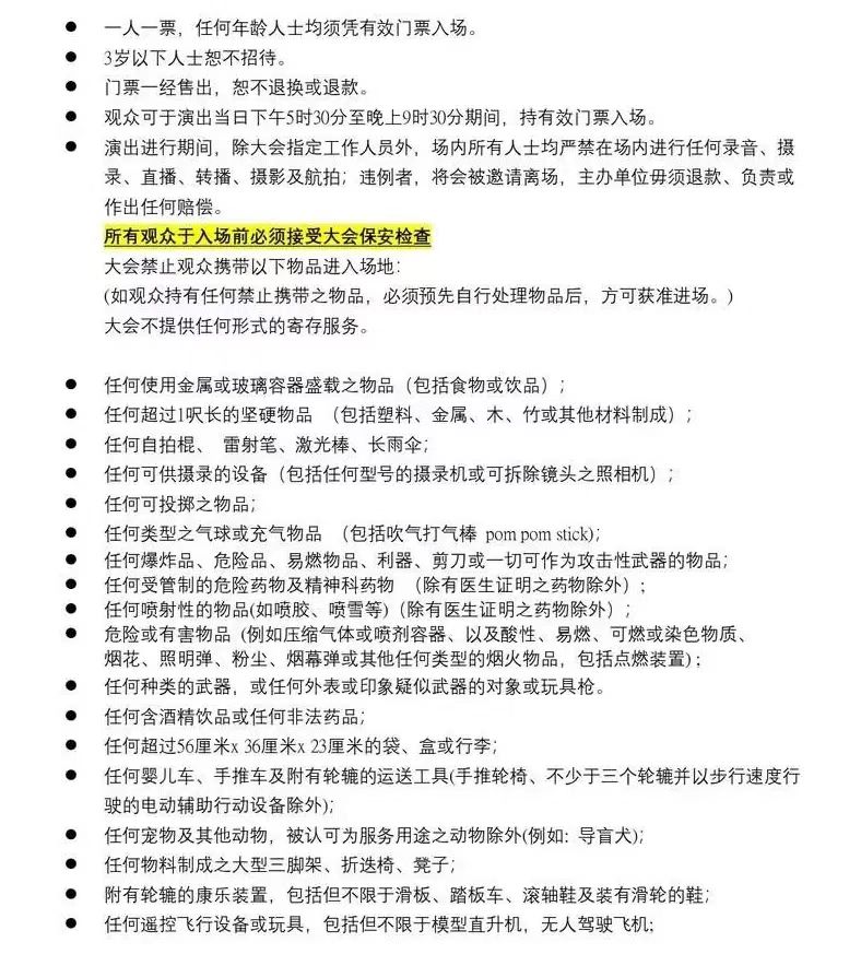 主办方向外公布看演唱会进场攻略,提醒歌迷们五大事项: