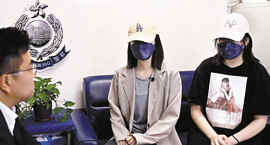 两名误堕电骗案内地女生接受警方访问,透过受骗经过及心路历程以提醒他人防骗。