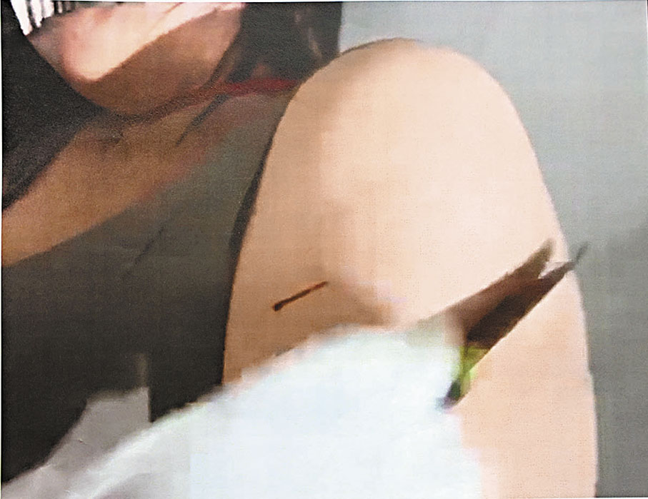 警方展示图片所见,女生被利刀割伤流血。