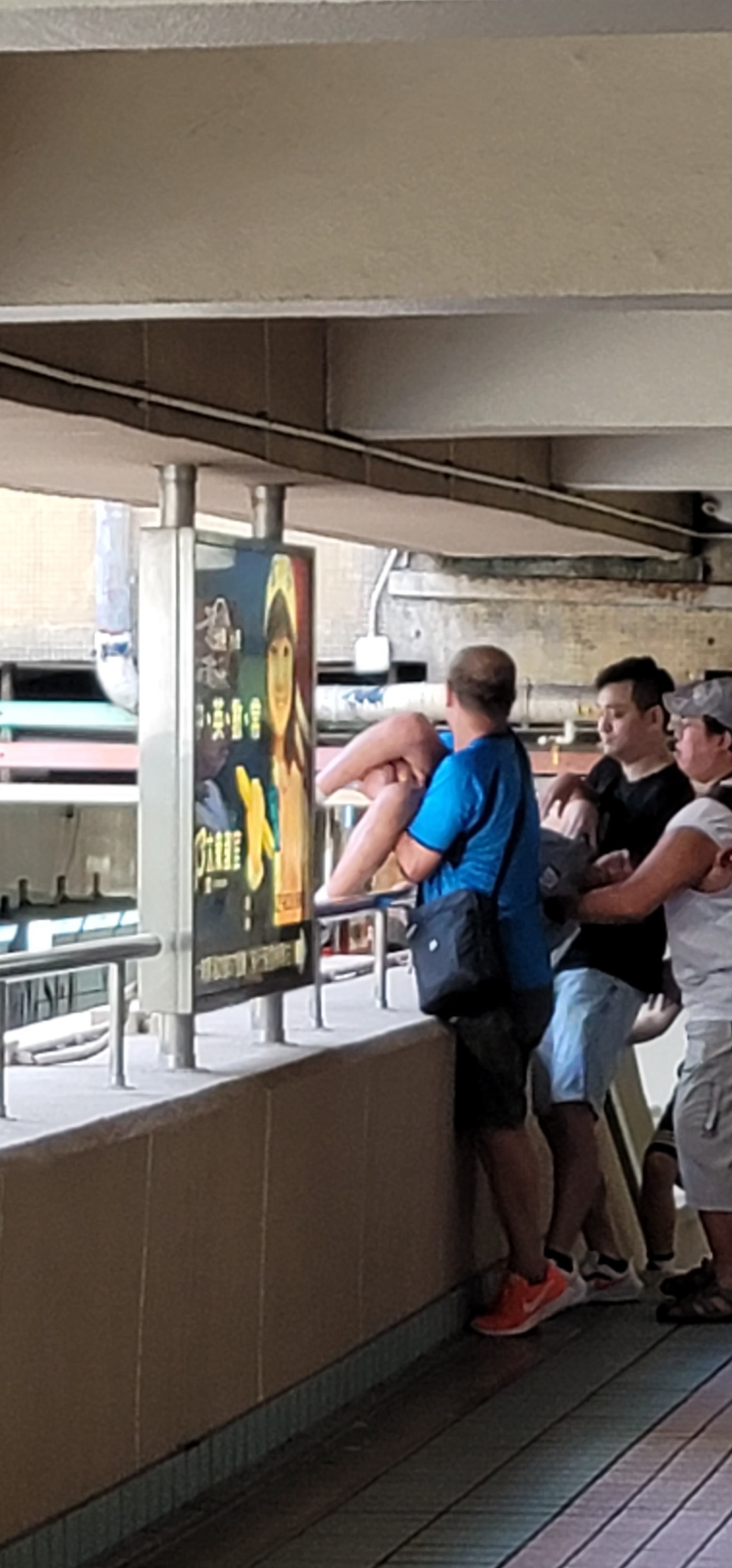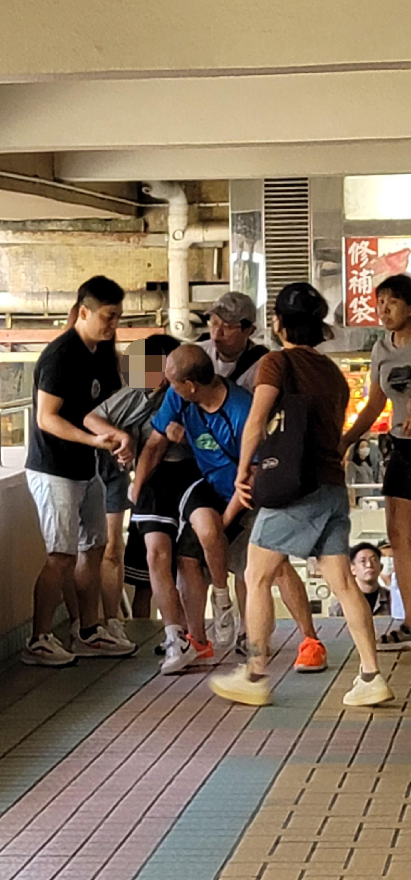 大埔广场男童情绪激动天桥企跳,3热心途人抱回安全位置。(Fb图片)