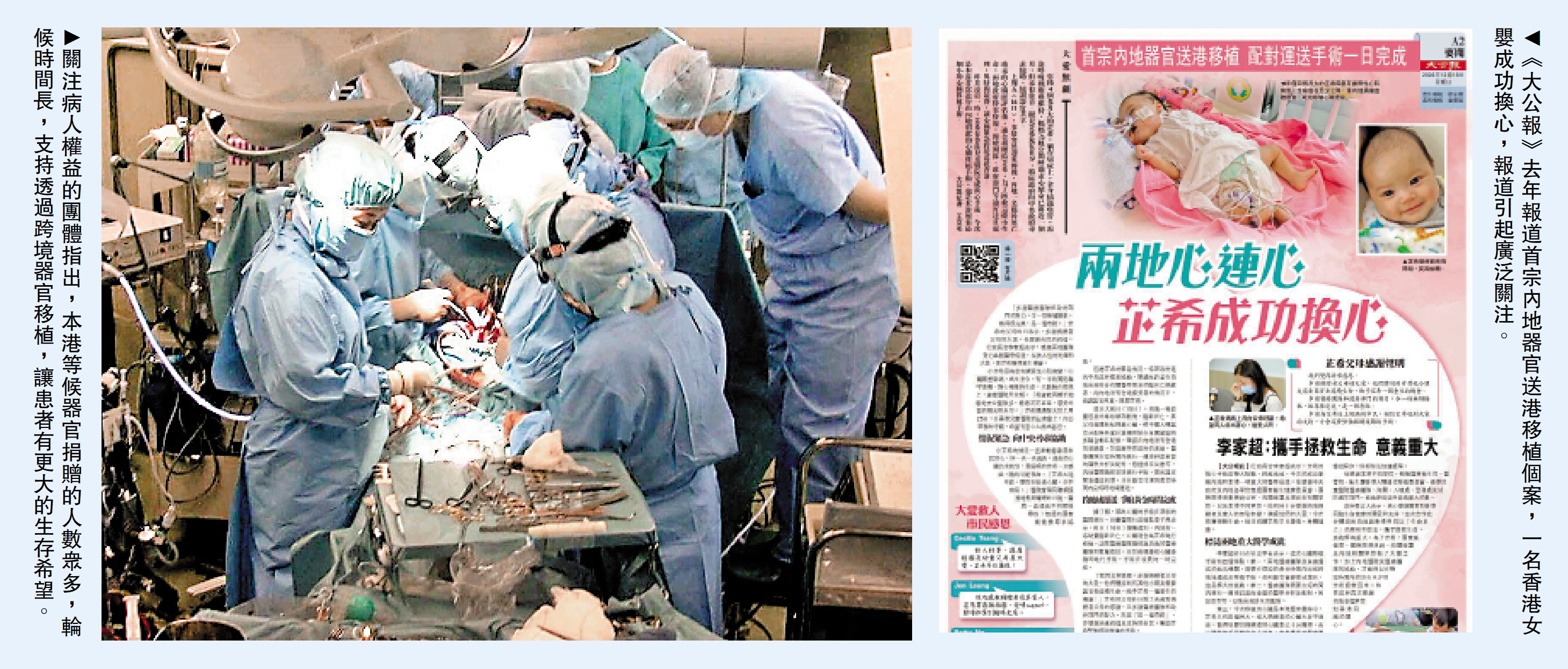 去年年底,内地一名脑死亡的幼儿患者无私捐献心脏,令急需心脏移植的四个月大的香港女婴芷希,终于有合适心脏作移植,获得重生的机会;日前亦有来自内地的造血干细胞顺利运抵本港,用作救助本港一名白血病患者。这都反映出跨境移植对挽救患者生命的巨大帮助。目前,中国人体器官分配与共享计算机系统(COTRS)更获世衞和世界器官移植学会高度认可。