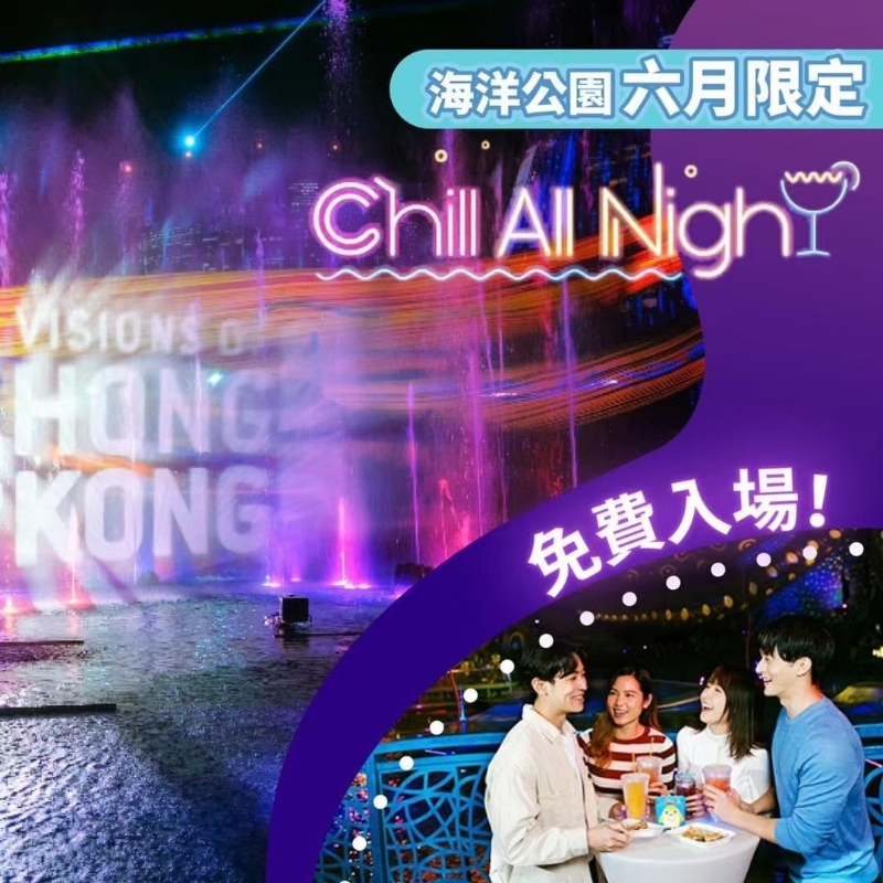 香港海洋公园六月限定“Chill All Night”将回归,由6月3日起连续4个星期六晚上6时30分至9时,每晩可供5000名访客免费入场参加,活动包含多媒体光影汇演、现场娱乐表演等。