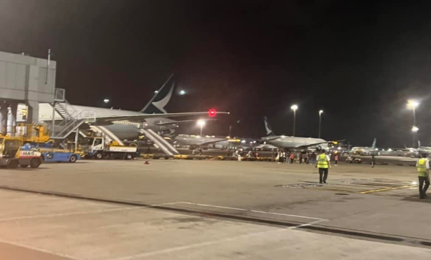 6月24日凌晨,国泰航空一架赴美飞机在香港机场疑因轮胎发生故障,中止起飞 图源:香港东网
