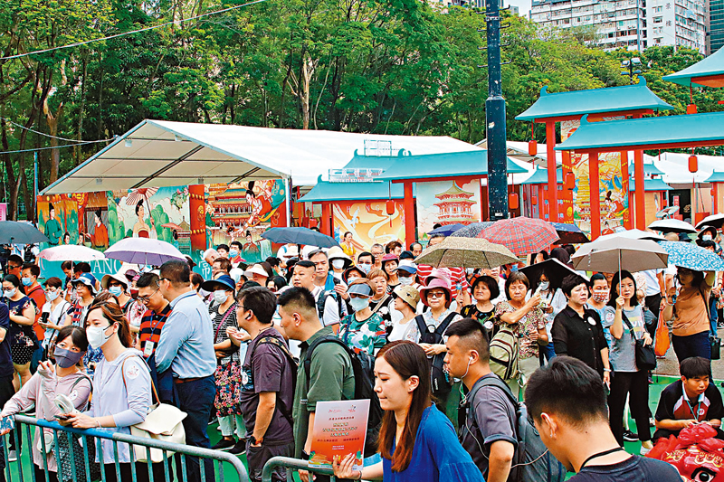 今日是香港回归祖国26周年的大日子,香港各界庆典委员会由昨日起一连三天在维园举办「庆祝香港回归祖国26周年活动」庆祝活动。今年庆委会庆祝活动充满浓郁的中华传统文化气息,包括在场内设置多个文化展区和体验区,以及大湾区创新科技展览,让市民了解香港创科发展。若想为今年庆回归26周年留下美好回忆,不妨到场内特设的两个打卡区,与特色艺术装置影相留念。昨日现场所见,在开场前已有市民排队等候,有市民表示,庆祝活动让市民欢庆回归的同时更可促进两地人文交流,值得一来。