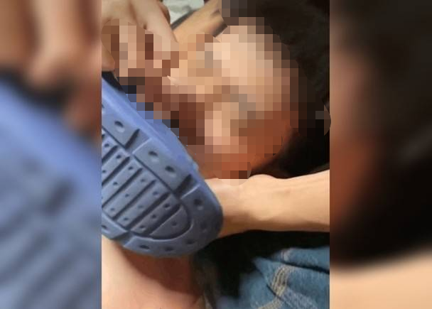 而该名被压制的男生则一直紧闭嘴巴,使出浑身解数,试图躲开面前的拖鞋。
