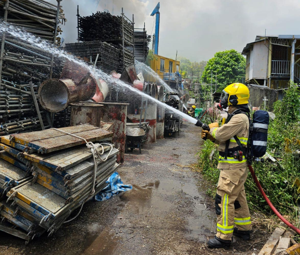 八乡锦田公路梁屋村一个回收场今日(12日)下午12时22分发生火警,消防处正进行灭火行动。