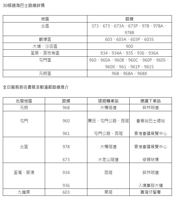 适逢香港书展及香港动漫电玩节将分别于今日(7月19日)至25日及7月28日至8月1日在香港会议展览中心举行,多条九巴过海线都可前往会场。不论是到会展“打书钉”,或是来往维港两岸游玩,九巴过海线是学生放暑假出游不二之选。