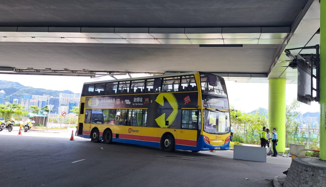 今日(22日)约12时30分,一辆夹斗车驶经启德邮轮码头对开时,疑未有收好的夹斗吊臂撞向一条天桥底部,桥底金属板等组件应声堕地,殃及尾随驶至的城巴22号线。人员接报到场围封部分行车线,正调查事故起因,事件中无人受伤。