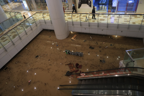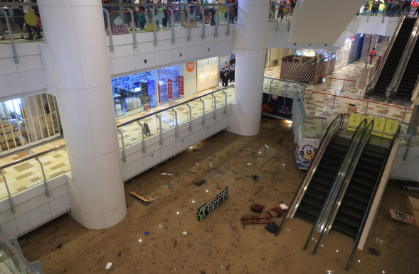 9月8日,香港黄大仙中心北馆地下全层被淹没。香港遭遇自有纪录以来最大暴雨,香港受颱风低压槽影响降暴雨,多区严重水浸。天文台于9月7日晚11时05分发出黑色暴雨警告。香港港铁观塘綫石硖尾站至彩虹站一段暂停服务,黄大仙地铁站内出现水浸。