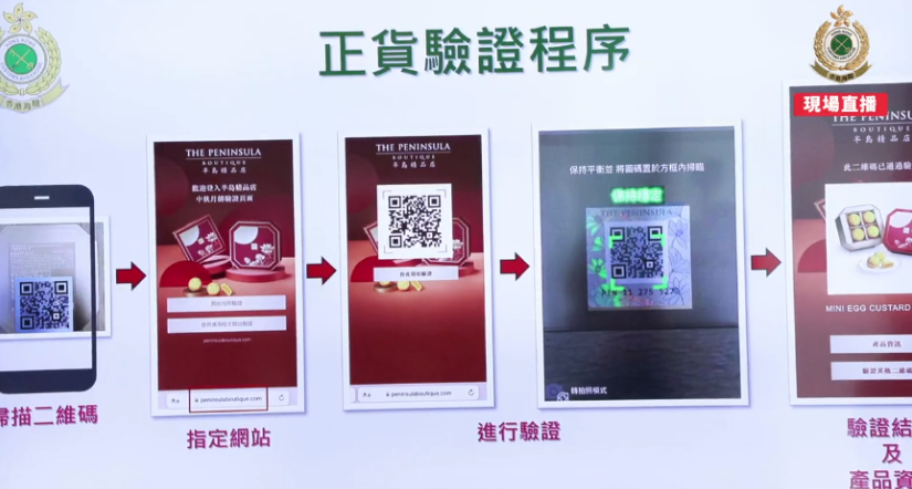 海关近日发现,市面上有2个品牌的怀疑冒牌月饼,并同正货一样,包装上有印上二维码的镭射贴纸,让消费者验证,其中一款会连接至伪冒的验证页面。两个涉及的品牌分别是半岛酒店同美心的月饼。