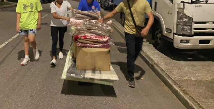 “小犬”逐渐迫近本港,风力会于稍后时间进一步增强,北区沙打关爱队昨日(6日)晚接到北区民政事务署通知,随即到沙头角中心小学搬运床褥和物资到沙头角社区会堂,设置临时庇护中心,预备有需要时可以马上启用,为风灾做好应急准备。