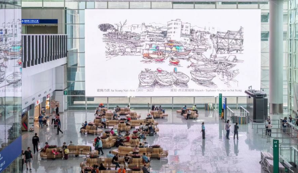 艺“邮”机场打卡点与非遗画作牆 展现香港文化独特风貌