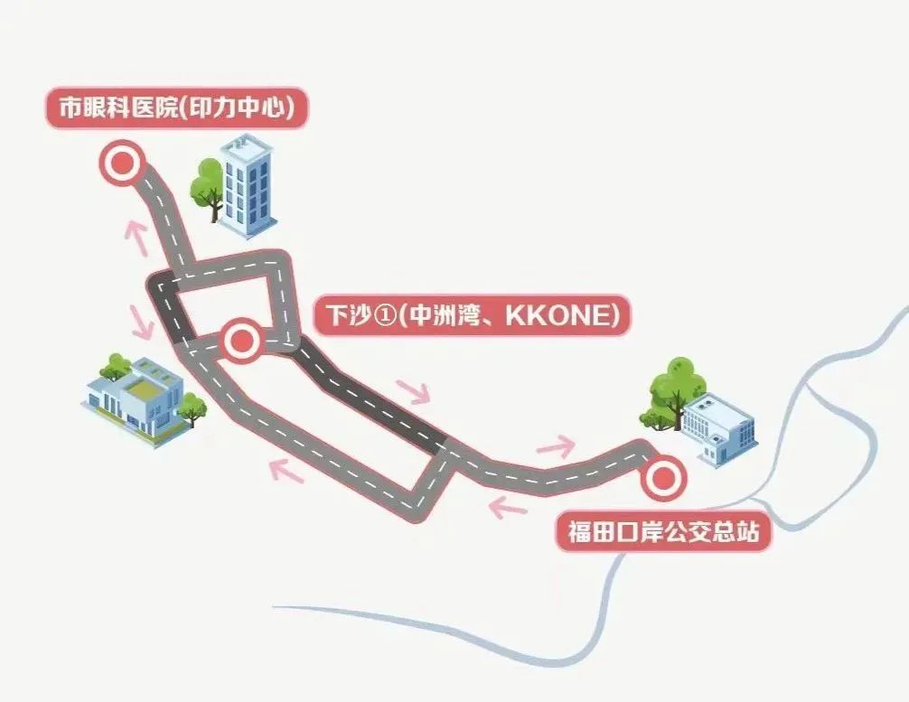 停靠站点:福田口岸公交总站、下沙①、市眼科医院