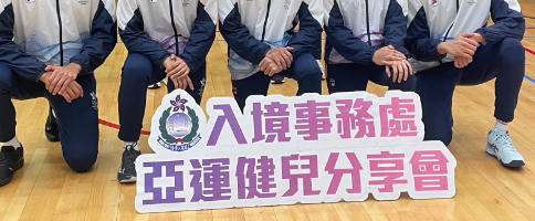 今日(13日)入境处在入境事务学院为受训学员举行了亚运健儿分享会,由参与亚运比赛的10位入境处同事与学员作分享,讲述他们如何兼顾艰辛的训练和日常工作,并鼓励学员应用运动所学精神到工作上。分享会后有运动员和学员的排球交流赛,入境处处长郭俊峯、副处长和助理处长亦有出席。