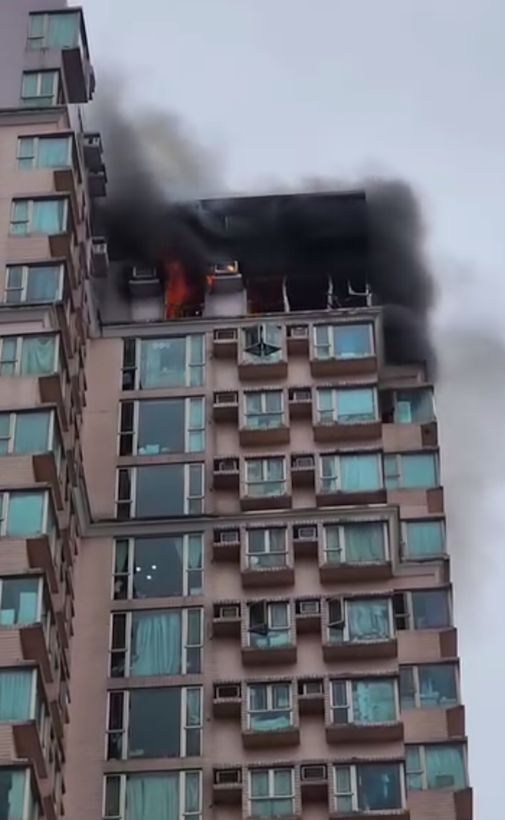 今日(21日)下午1时09分,大埔太湖花园2期17座一高层单位起火,冒出大量浓烟席捲半空。从网上影片可见,涉事单位火光熊熊。
