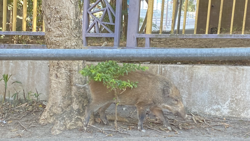 今日(24日)早上9时04分,一隻约1.5米长野猪,被市民发现在香港动植物公园内,恐伤及途人,报警求助。