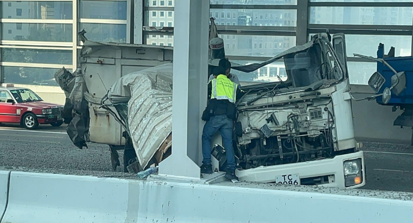 荔枝角泥头车与法拉利相撞,司机头破血流送院