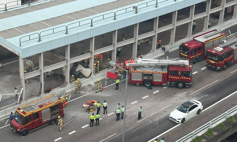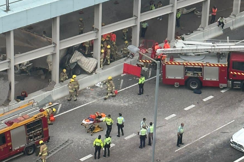 荔枝角青沙公路今日(3日)发生交通意外。早上8时许,有市民报警,称有一辆泥头车沿青沙公路往沙田方向行驶时与一辆红色法拉利相撞,泥头车失控,撞向路旁石壆,车辆严重毁坏,当场泥沙散落一地,泥头车司机亦被困其中,头破血流受伤严重。警方、消防随即接报到场,出动大批消防员和救护人员,紧急对被困泥头车司机进行救治,随后由消防将其救出送院。据悉,事发法拉利轻微受损,司机以及乘客毫发未伤。警方正在调查事故发生原因。
