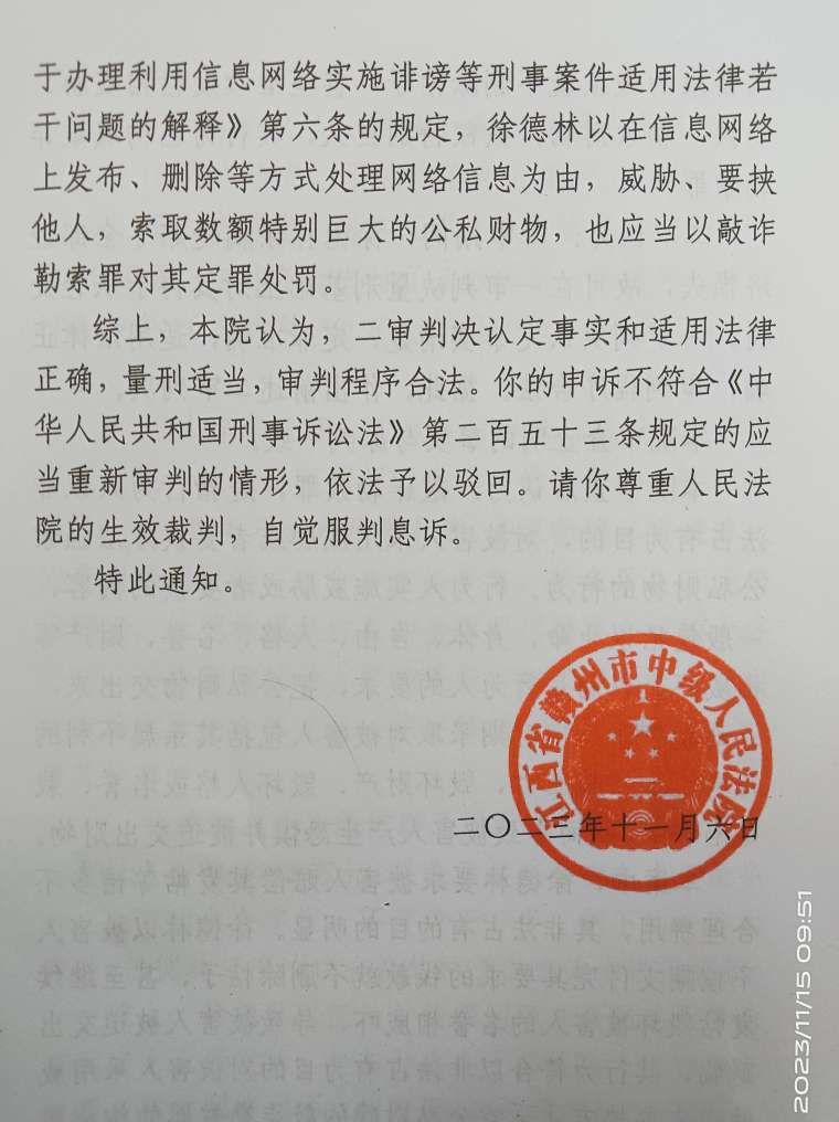 罕见!江西赣州驳回申诉通知书竟无主审人员签名,司法公正备受质疑