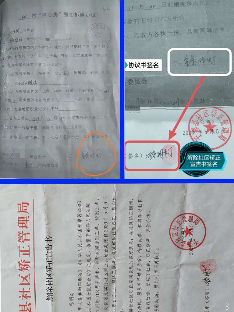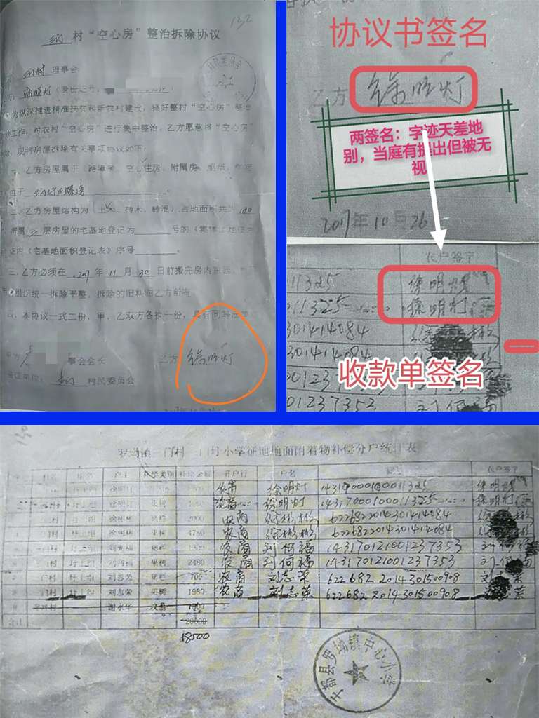 视频为:镇村干部来访现场录音所做,已承认协议书签名不是我爸所签,即是伪造,可提供录音