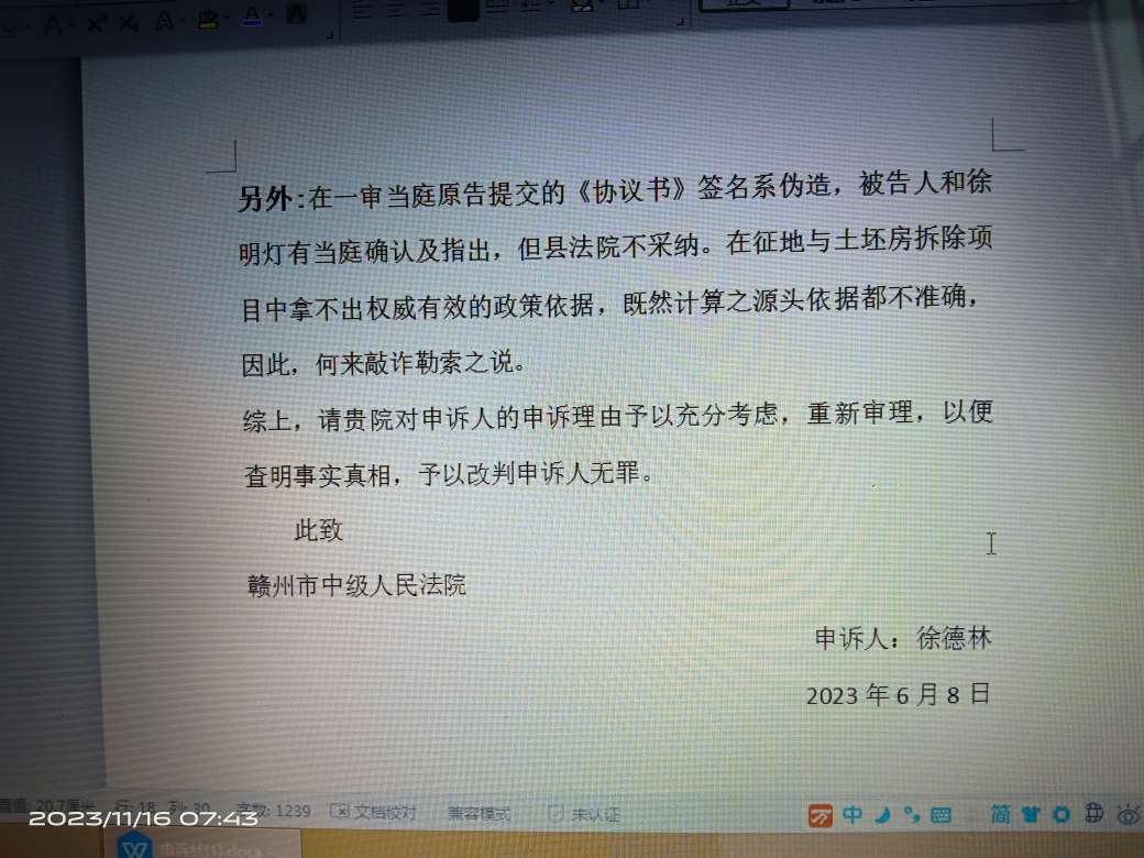 申诉状所提协议书伪造签名问题