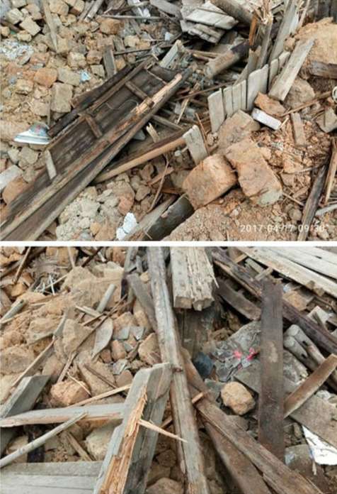 上下图示为:房屋拆除前后,拆后现场一片狼藉