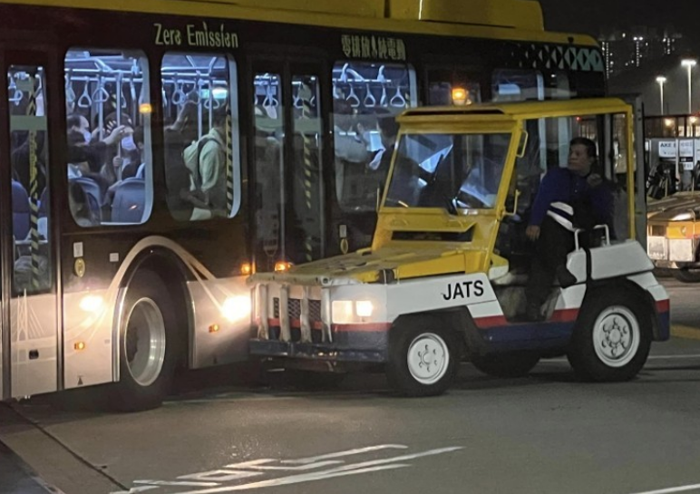赤鱲角香港国际机场发生交通意外。今日(9日)凌晨零时许,一辆载满乘客的机场禁区接驳巴士,驶至一号客运大楼对开转弯时,与一辆运载货物的拖卡车发生碰撞。巴士上一名女乘客感胸痛不适,及后清醒由到场救护车送院治理。意外原因有待调查。