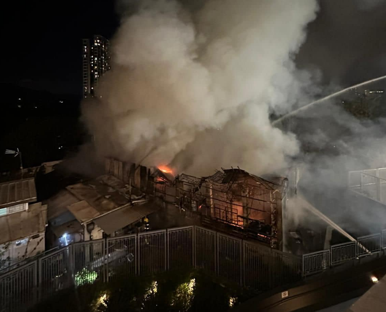 元朗马田壆村两铁皮屋起火,浓烟捲半空多人疏散