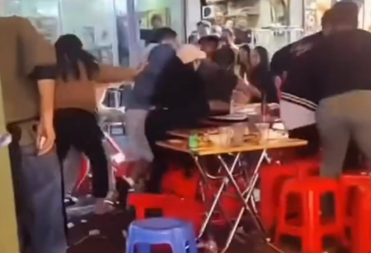 网上18日疯传一段群殴片段,古早港片在现实上演,多人在大排挡混战,枱倒椅翻,据称发生于17日的庙街一间食肆。