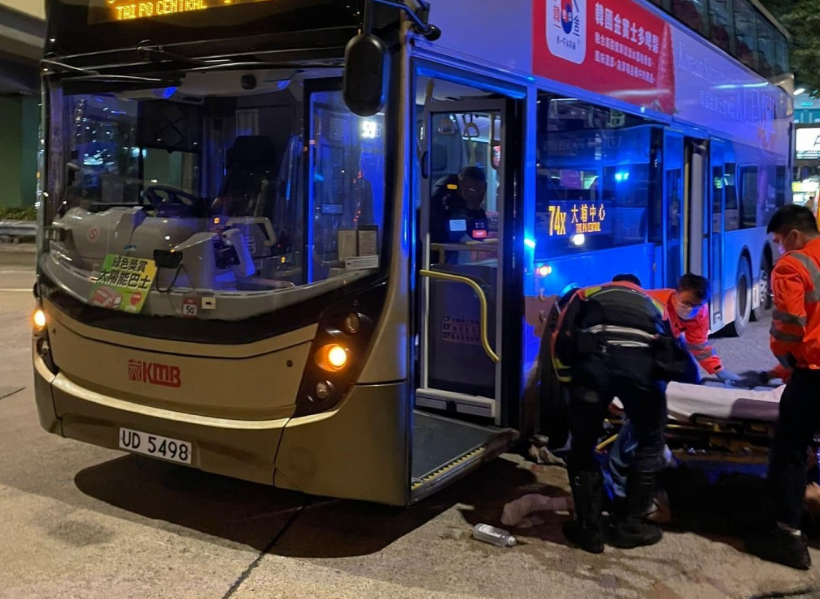 昨晚(20日)9时47分,一名60岁姓吴男子在大埔安埔路大埔中心巴士总站,遭一辆74X双层九巴撞倒,左脚受伤浴血。有热心市民见状上前施救并协助报案。事主其后由救护员送院救治。