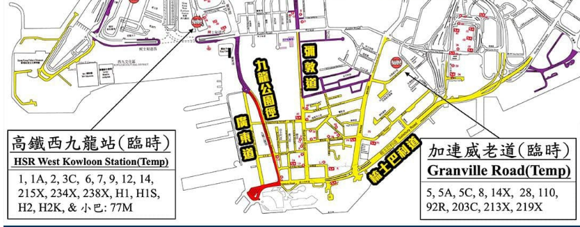 中环兰桂坊、尖沙咀及西九文化区一带在平安夜下午2时开始,分阶段实施封路及交通改道安排;尖沙咀东(麽地道)巴士总站及中港码头巴士总站会由当日晚上6时开始暂停使用,而尖沙咀天星码头巴士总站亦会由晚上6时30分开始暂停使用,直至封闭道路重开并恢复行车为止。为配合封路安排,行经受影响地区的巴士及专线小巴路线会临时改道或暂停服务,而位于受影响地区的相关巴士站及专线小巴站,亦需暂停使用或迁移。