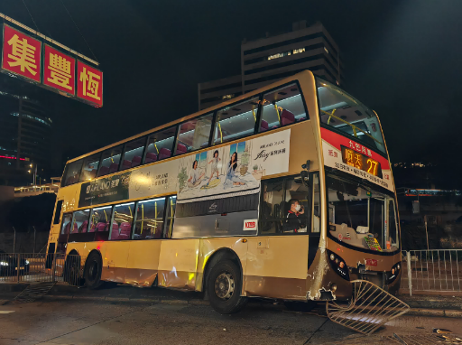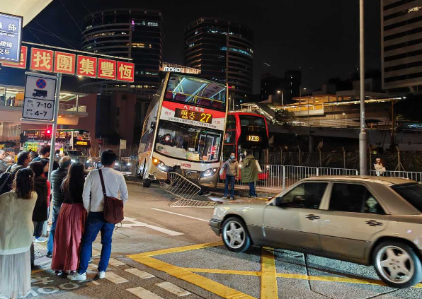 读者爆料称,一辆前往顺天的九巴27号巴士怀疑失控,在旺角洗衣街撞上护栏,暂未知人员伤亡情况。据读者透露称,事情发生后,有救护车赶到现场。据悉,九巴司机颈部受伤,送院治理。意外原因仍待调查。